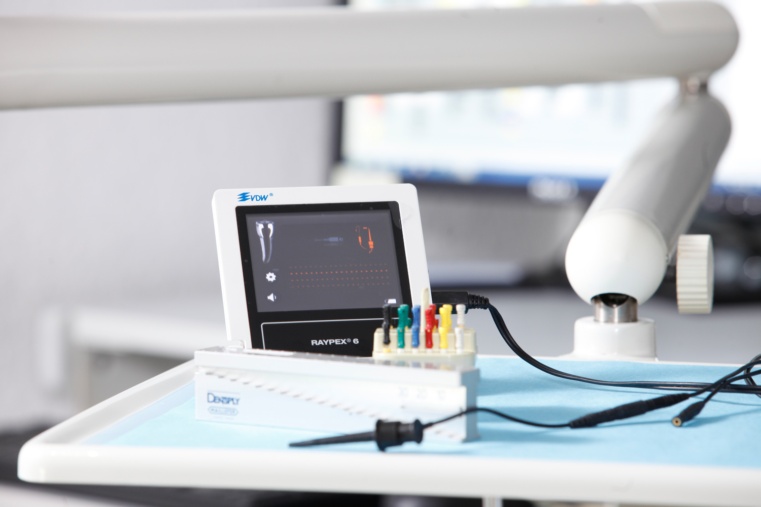 Unter örtlicher Betäubung wird die Karies entfernt und so ein Zugang zu den Kanaleingängen geschaffen. Nach Entfernung des entzündeten oder abgestorbenen Zahnnervs wird mittels elektrometrischer Längenmessung die Länge des Wurzelkanals exakt dargestellt und bestimmt.